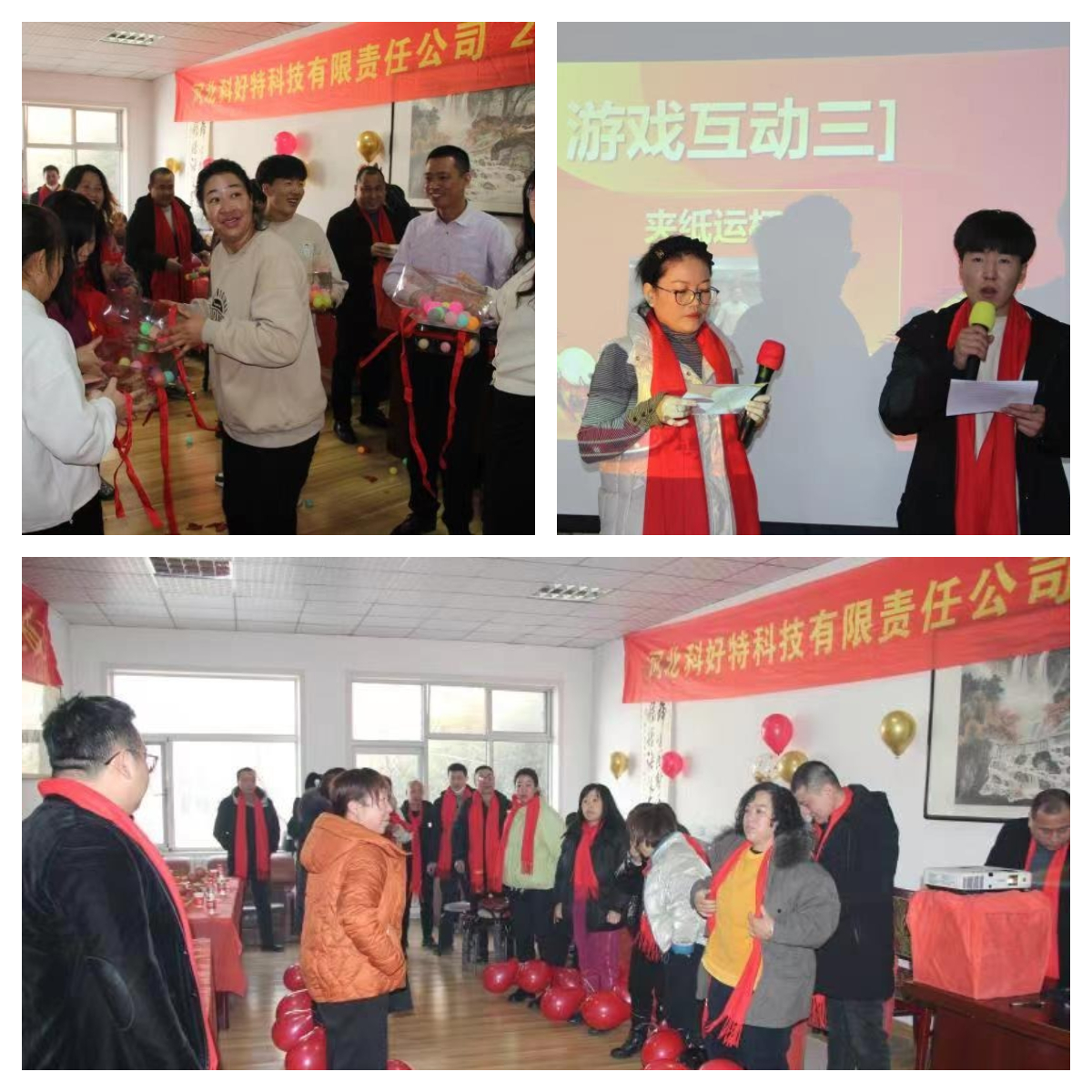 做游戲是我們企業(yè)年會必不可少的環(huán)節(jié),大家都積極踴躍的參與進來,在歡聲笑語中,進行了夾紙運杯、踩氣球、公雞下蛋等游戲,將年會推向了一輪又一輪的高潮。