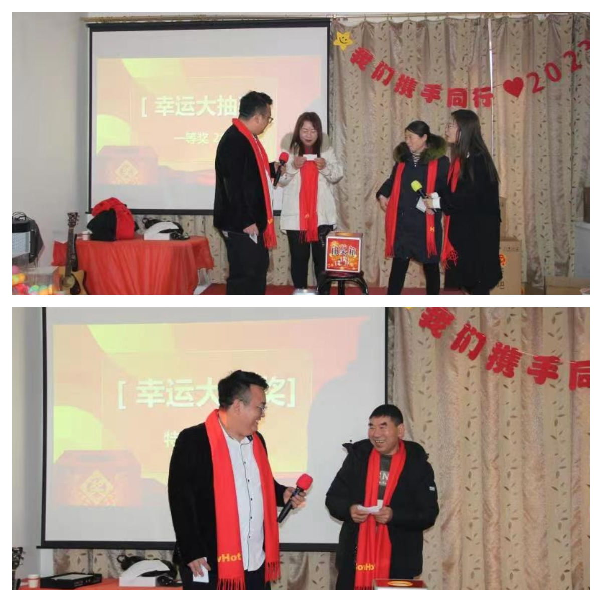 在掌聲和歡呼聲中,年會活動中穿插了是精彩紛呈的節(jié)目表演,銷售部、設(shè)計部、生產(chǎn)部的同事們輪番上陣,有歌曲演唱、有吉他表演、有三句半相聲...不得不說,我們的同事真是藏龍臥虎,多才多藝。