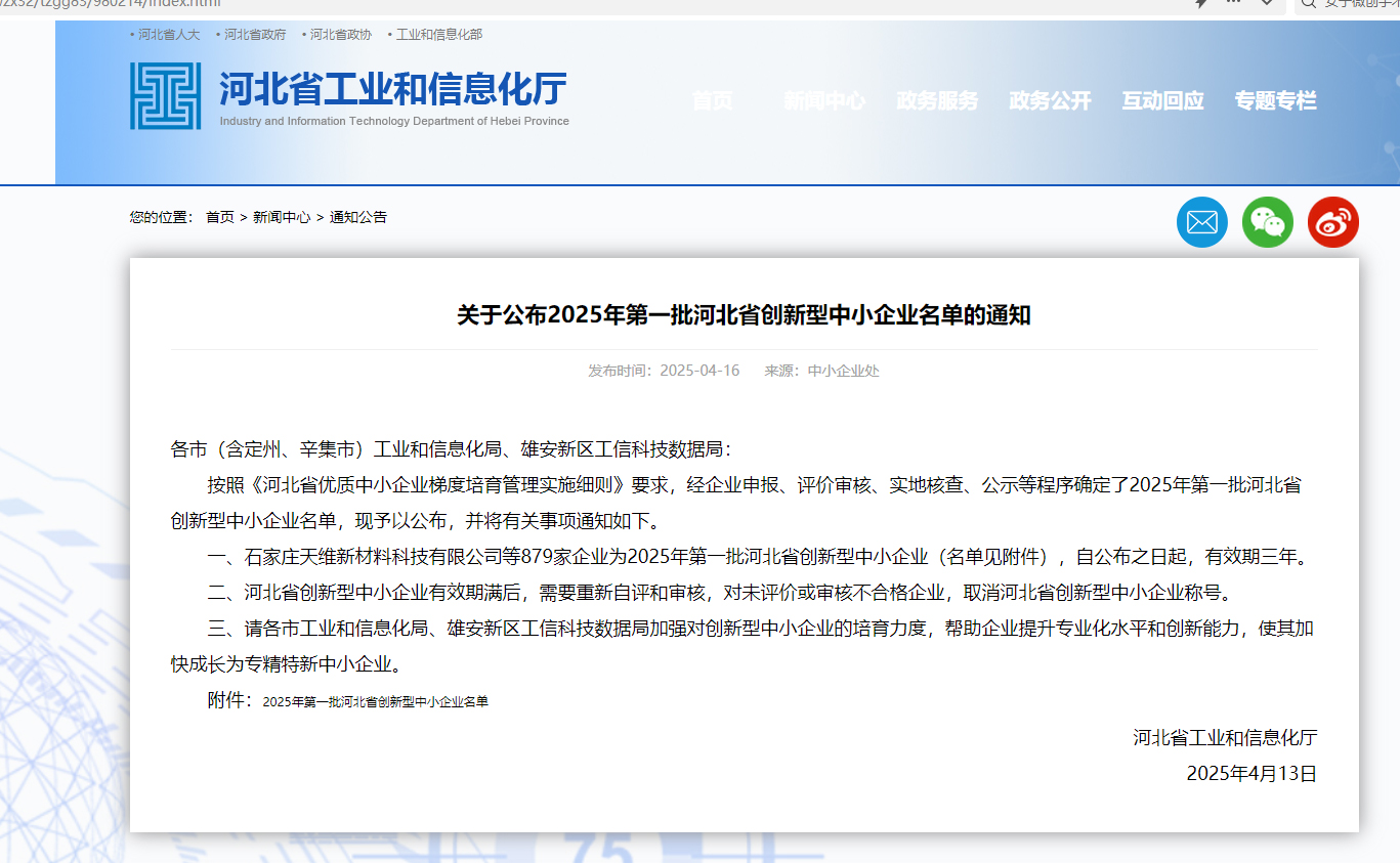 近日,河北省工業(yè)和信息化廳正式公布2025年第一批河北省創(chuàng)新型中小企業(yè)名單。歷經(jīng)嚴(yán)格評(píng)審,科好特成功獲得 “創(chuàng)新型中小企業(yè)” 認(rèn)證。這是科好特企業(yè)在提高企業(yè)自主創(chuàng)新能力、走創(chuàng)新型道路的又一喜人成果,這一榮譽(yù)不僅是對(duì)科好特在專業(yè)化、精細(xì)化、特色化發(fā)展道路上成績(jī)的肯定,更標(biāo)志著公司在創(chuàng)新與高質(zhì)量發(fā)展領(lǐng)域邁上了新臺(tái)階。