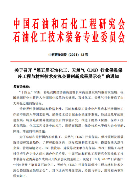 大會將邀請中石油、中石化、中海油、中化集團(tuán)、神華集團(tuán)、國家管網(wǎng)集團(tuán)等單位相關(guān)領(lǐng)導(dǎo)出席大會并做重點發(fā)言,作為參會代表,科好特公司將與來自國內(nèi)外保溫保冷材料上下游一百多位杰出的企業(yè)家、學(xué)術(shù)界翹楚等,就石化、天然氣保溫、保冷、腐蝕與防護(hù)等問題進(jìn)行交流,共同展望新趨勢,探索新機(jī)遇。