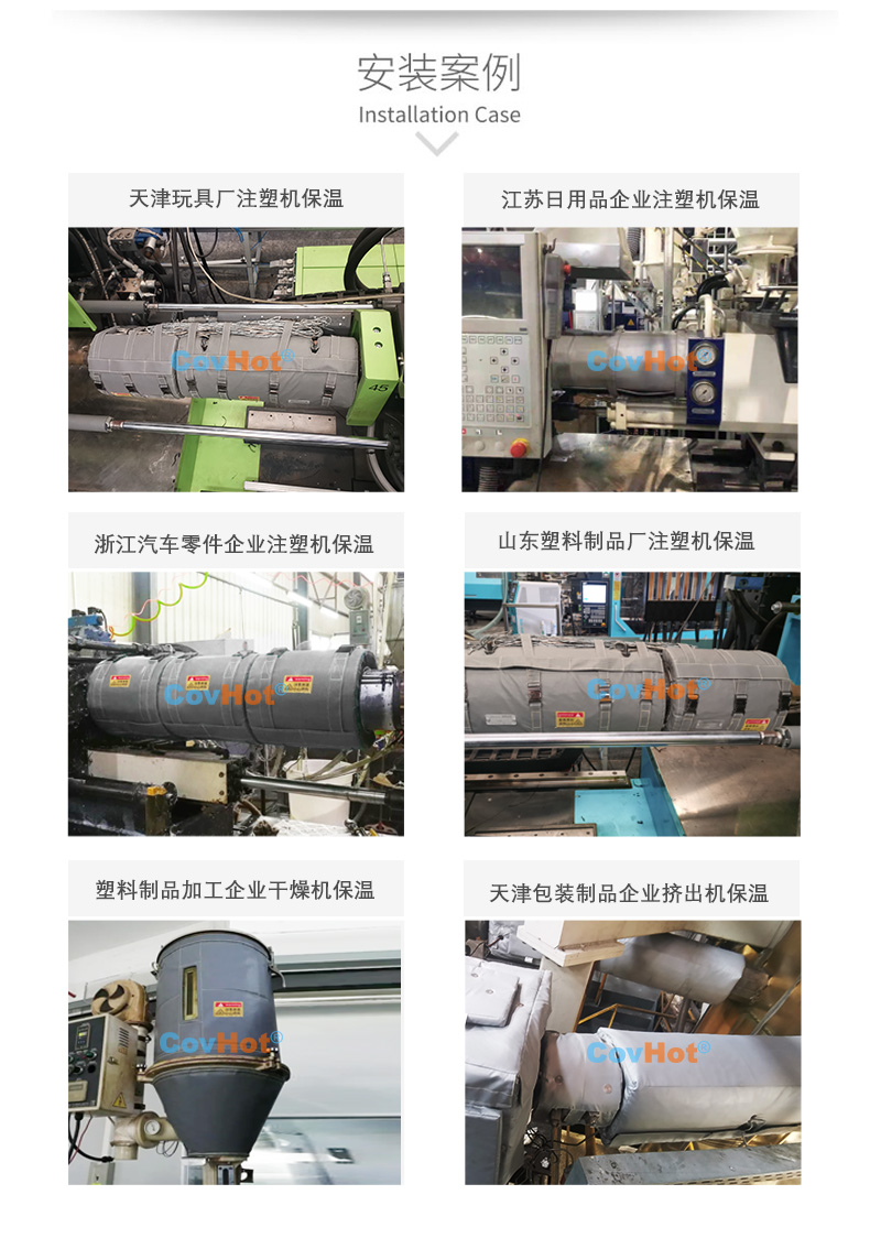 注塑機(jī)節(jié)能保溫罩,可根據(jù)實(shí)際空間大小靈活選擇適宜的厚度,以此來滿足注塑機(jī)節(jié)能保溫罩在受限空間內(nèi)順利安裝。為達(dá)到注塑機(jī)保溫隔熱效果,注塑機(jī)節(jié)能保溫罩選用導(dǎo)熱系數(shù)低、耐高溫的原材料加工制作而成,是能夠滿足現(xiàn)場工況需求的。安裝注塑機(jī)節(jié)能保溫罩還具有節(jié)能降耗的效果,一般情況下,節(jié)電率最高可達(dá)40%左右。