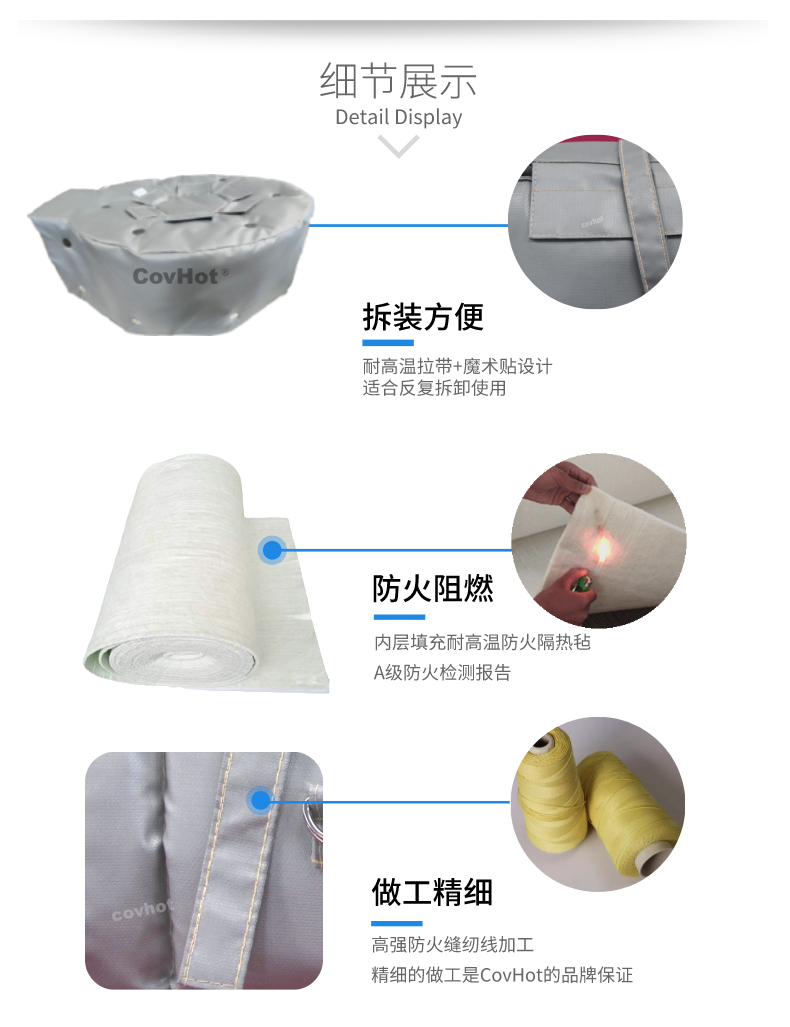 然而,如果選用可拆卸保溫套的話,這些食品生產(chǎn)保溫隔熱工作便不會(huì)出現(xiàn)上訴問題。可拆卸保溫套是根據(jù)設(shè)備的外形尺寸而量身設(shè)計(jì)制作的,安裝好后保溫隔熱效果顯著,且美觀大方。可拆卸保溫套屬于柔性制品,通常采用魔術(shù)貼或拉帶等方式搭接,具有拆裝便捷,可反復(fù)循環(huán)使用等特性。