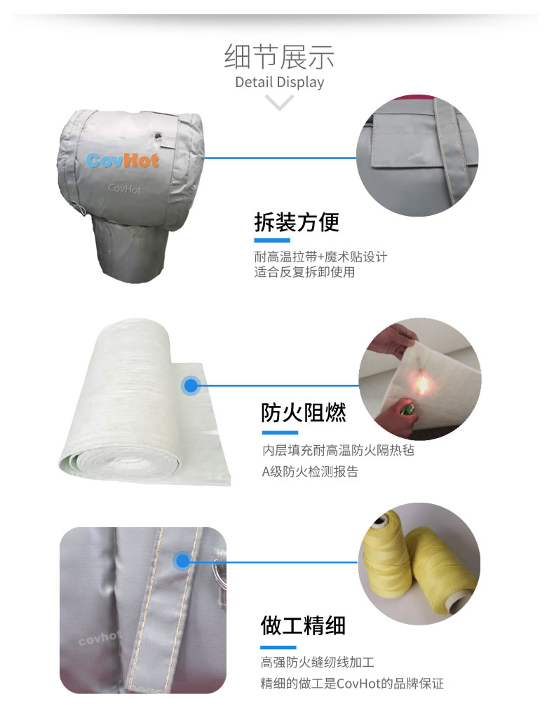 可拆卸保溫衣安裝施工方便快捷,施工周期短,可大大節(jié)約大修時間,從而提高設(shè)備利用率,給企業(yè)帶來更好的經(jīng)濟效益;